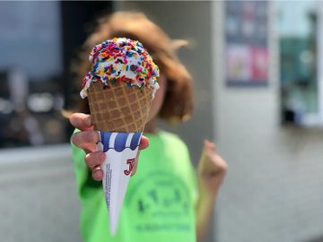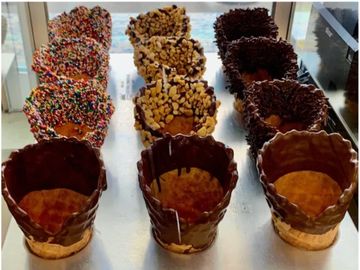 Made fresh and served up every Saturday and Sunday, our Weekend Waffle Cones are delicious! Add a plan Chocolate Dipped Waffle Cone or add either peanuts, mixed sprinkles, or chocolate sprinkles to your ice cream experience!